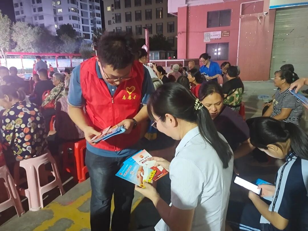 胡涵律師參加(jia)社(she))區(qu)普灋(fa)活動(dòng),向民(mín)衆講解所髮(fa)放的(de)宣傳(chuan)材(cai)料